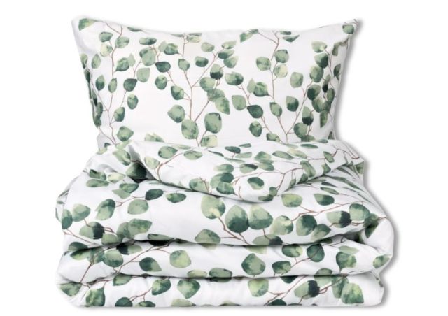 Ekskluzywna pościel satynowa 220x200 Liście biała zielona 55A