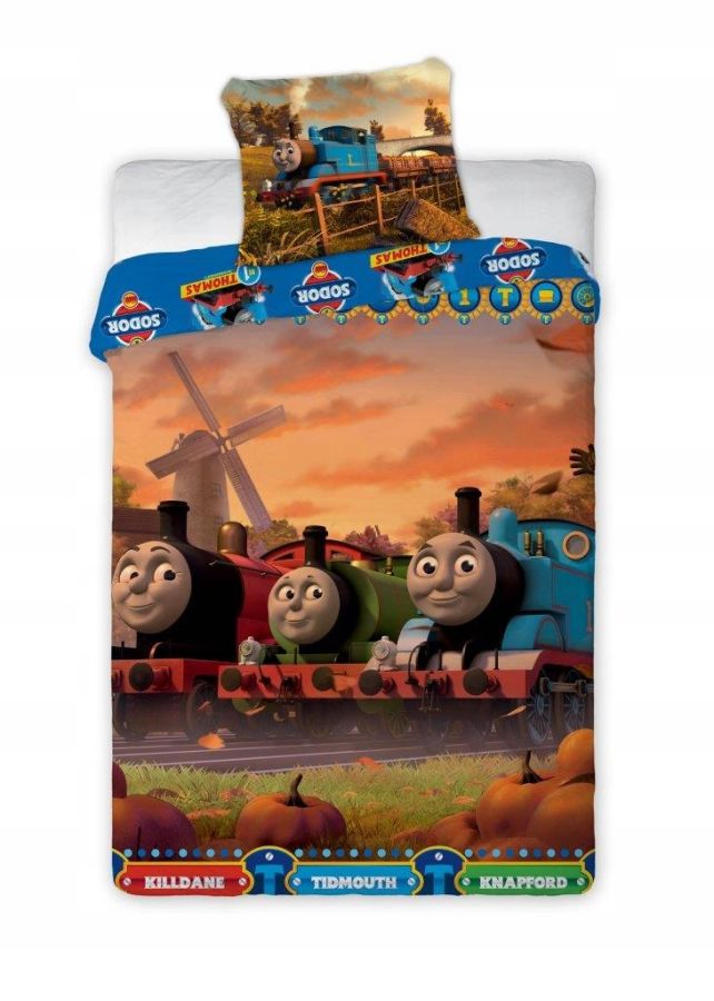 Pościel bawełniana 160x200 Tomek I Przyjaciele parowóz pociąg DWUSTRONNA