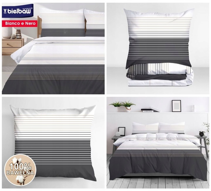 Pościel bawełniana Bianco Nero 160x200 Greno Bielbaw PREMIUM