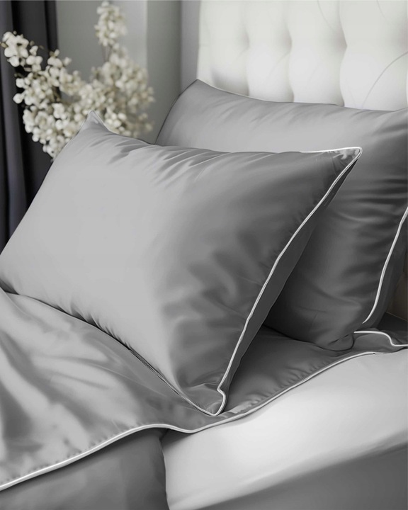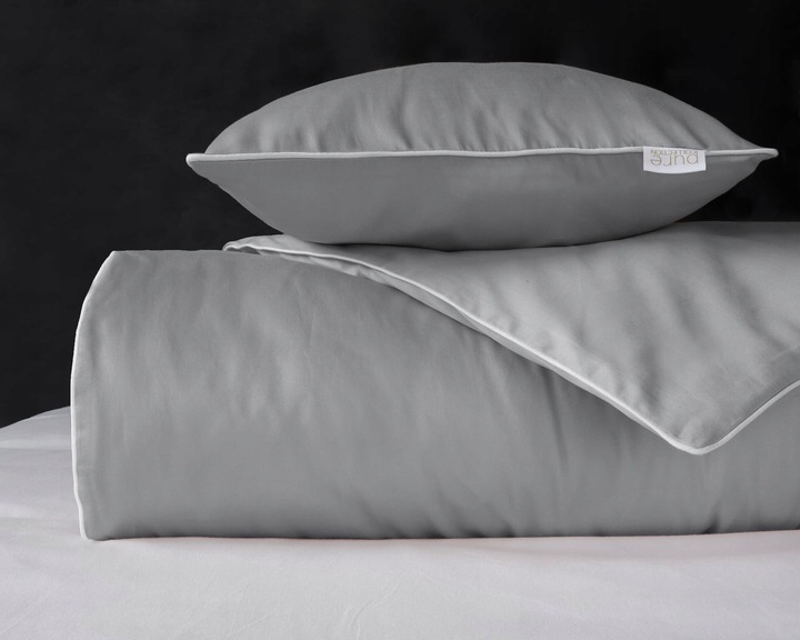 Pościel MAKOSATYNA satynowa jednobarwna z lamówką 160x200 SZARA JASNA PURE