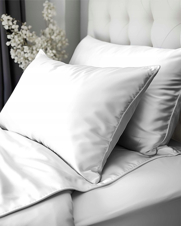 Pościel MAKOSATYNA satynowa jednobarwna z lamówką 160x200 BIAŁA PURE