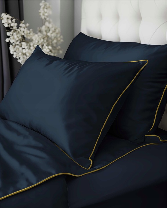Pościel MAKOSATYNA satynowa jednobarwna z lamówką 220x200 GRANATOWA PURE