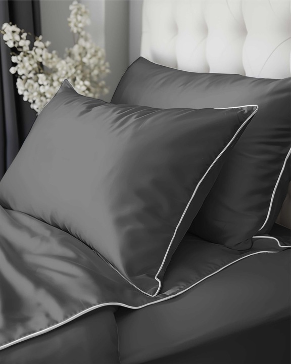 Pościel MAKOSATYNA satynowa jednobarwna z lamówką 220x200 SZARA PURE