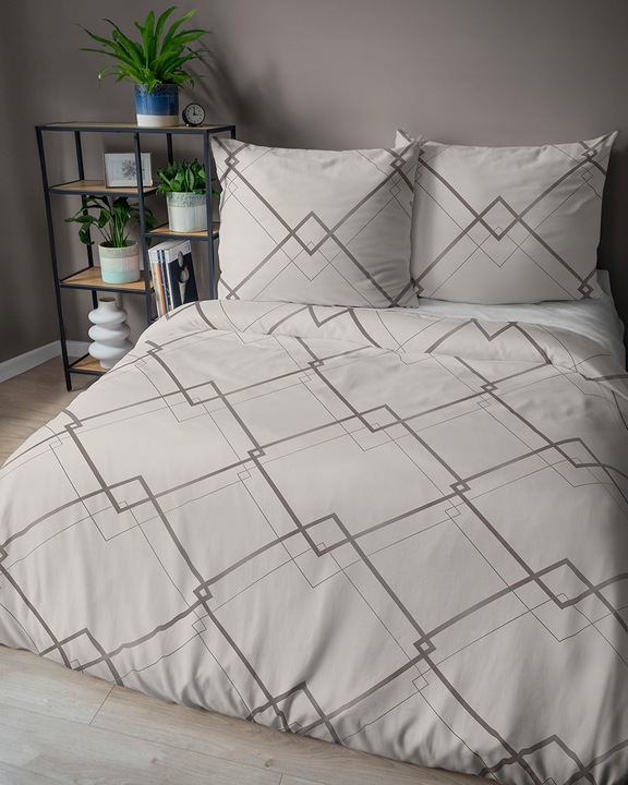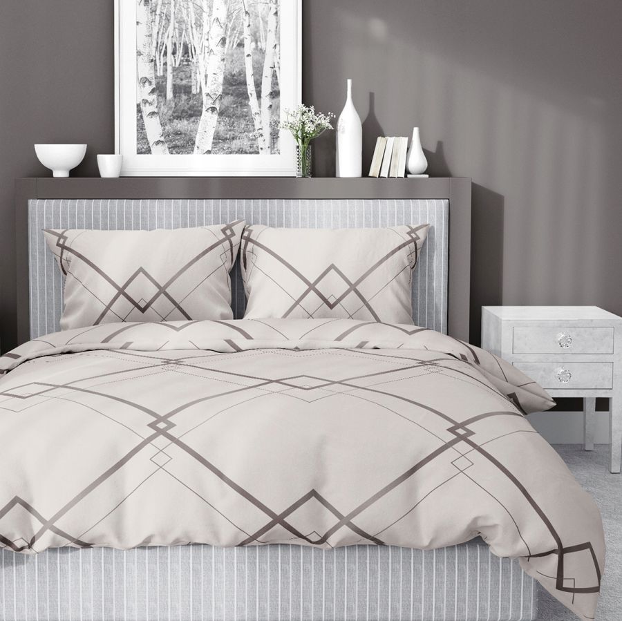 Pościel satynowa 160x200 Home Satin geometria beżowa brąz komplet 3 części