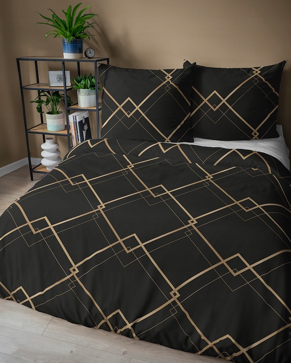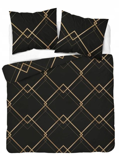 Pościel satynowa 160x200 Home Satin geometria czarna złota komplet 3 części