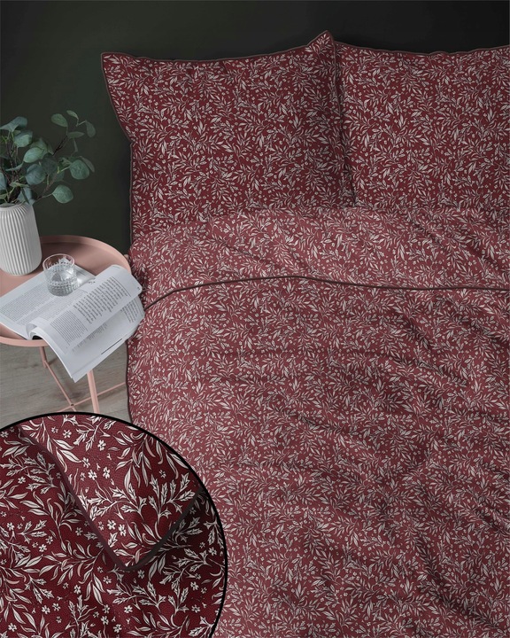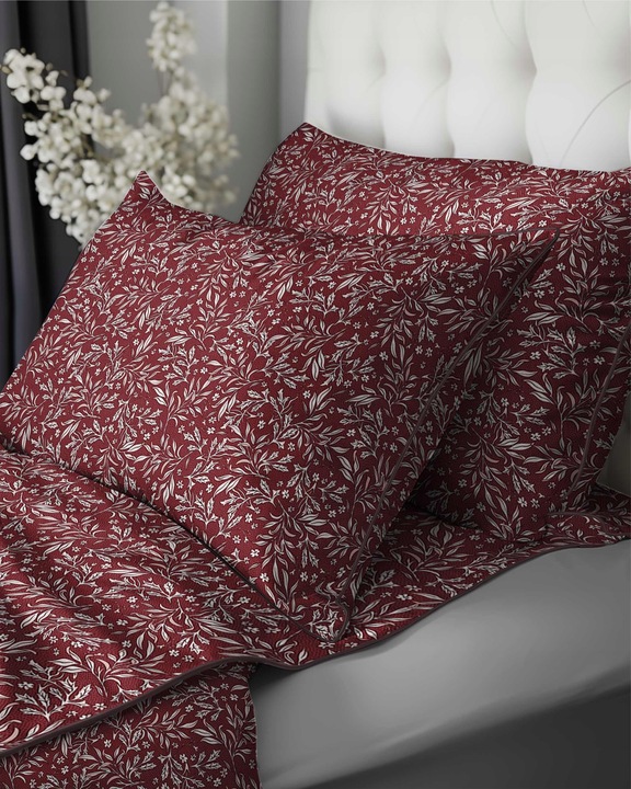 Pościel bawełniana z perkalu z lamówka 220x200 LAME PERCALE PERKAL Liście